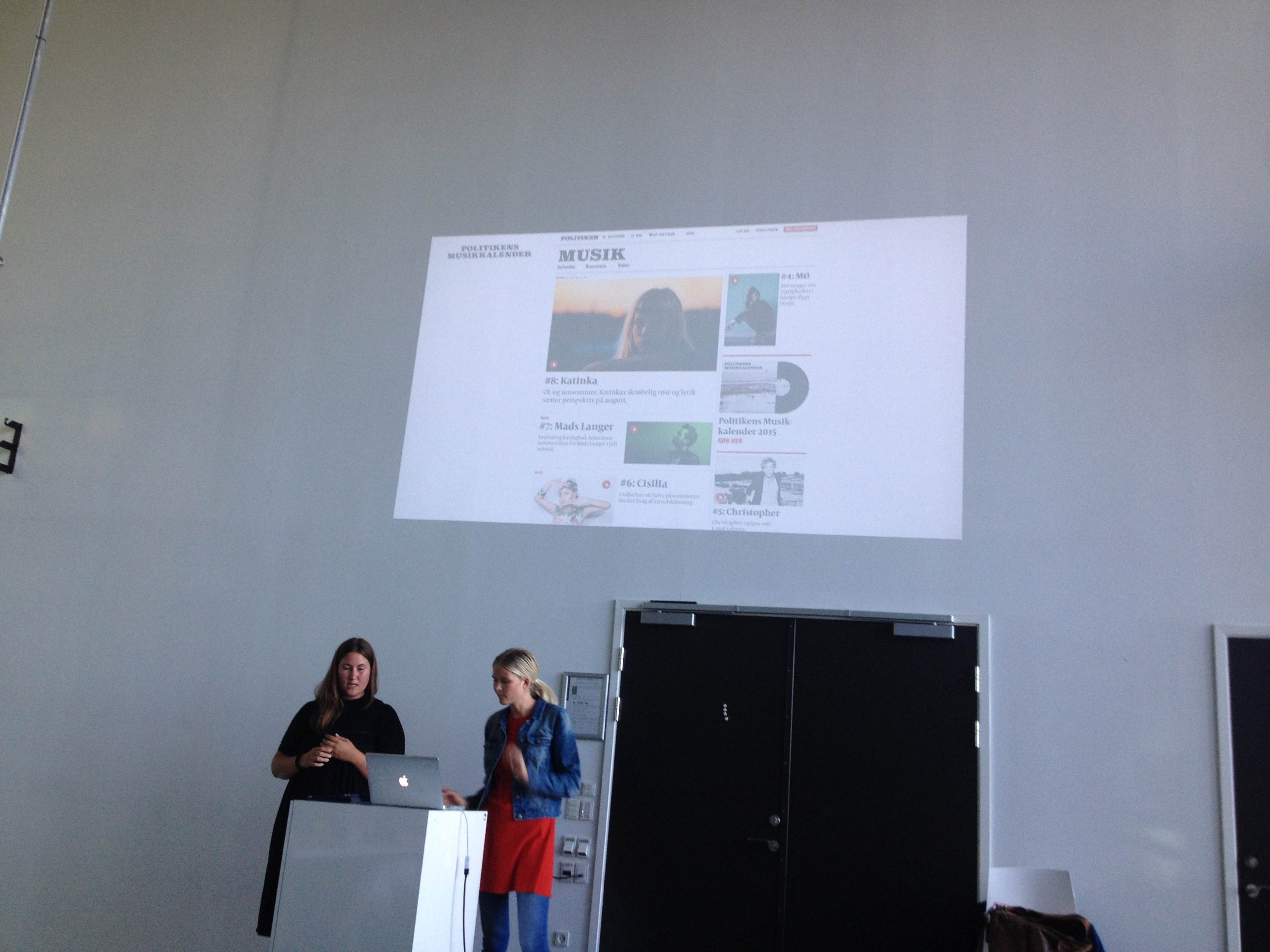 Vindergruppen præsenterer deres løsning, Politikens Musikkalender, for juryen. Kommentaren faldt, da 32 studerende fra ITU og SDU præsenterede deres bud på, hvordan Politikens netavis kan tiltrække flere læsere i aldersgruppen 15-25 år. Sommerskolen ’Digital journalistik og projektledelse’ er en ny måde at udvikle koncepter til en virksomhed på, og derfor var der stor interesse for de studerendes idéer blandt jurymedlemmerne til den afsluttende pitchkonkurrence: