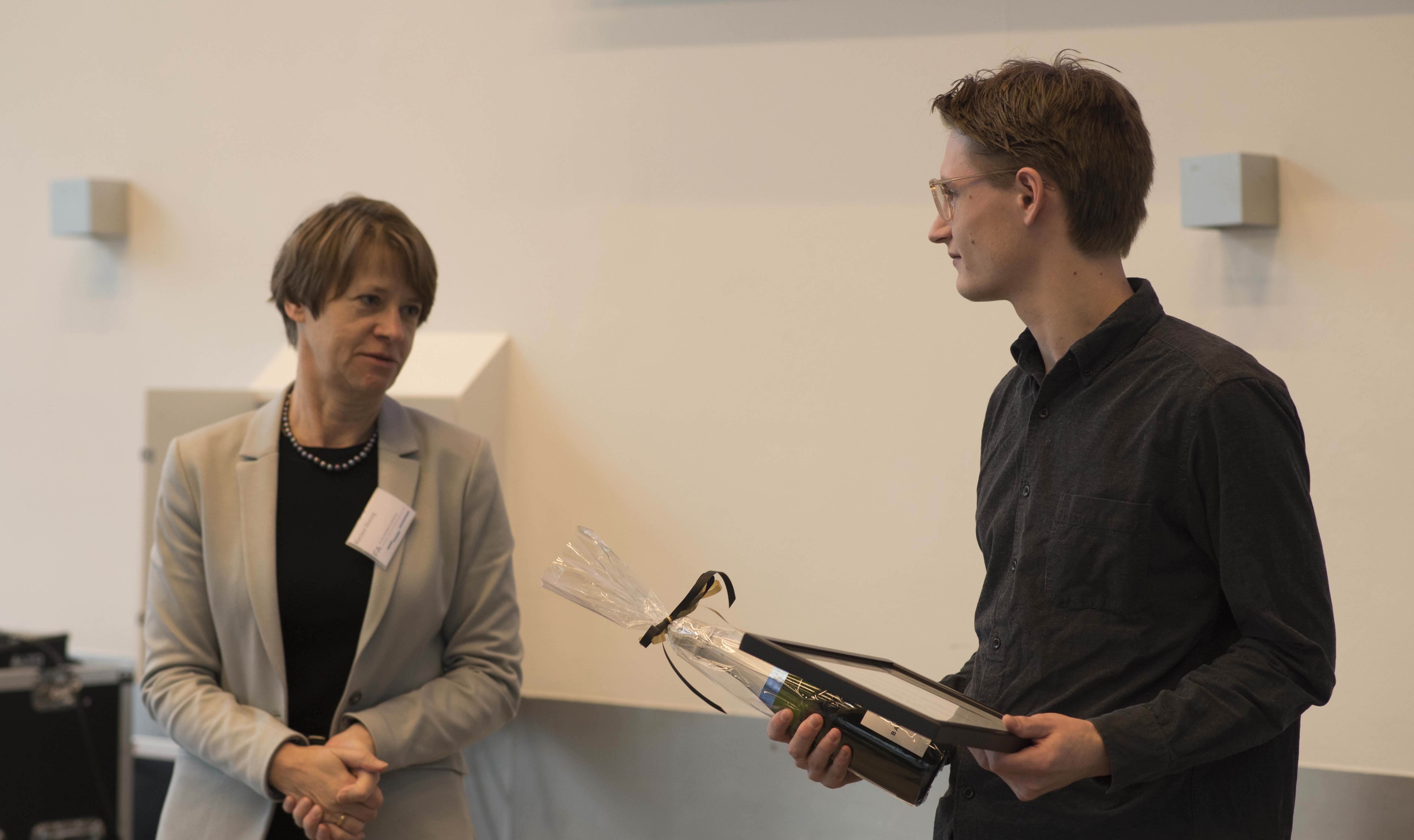 Emil Malthe Bæhr Christensen tog imod prisen på vegne af tomandsgruppen, da Mathias Rose i øjeblikket studerer i London.