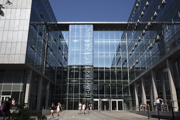 Find billeder af IT-Universitetets bygning, studieliv og direktion.